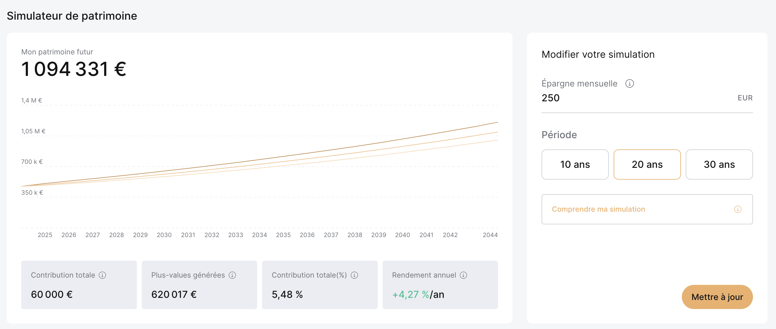 Si j'investis encore 250 euros par mois pendant 20 ans, mon patrimoine pourrait avoisiner le million d'euros.